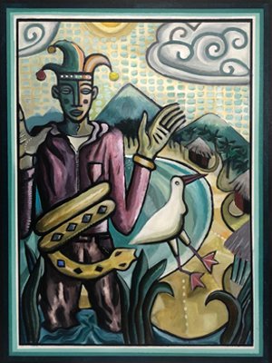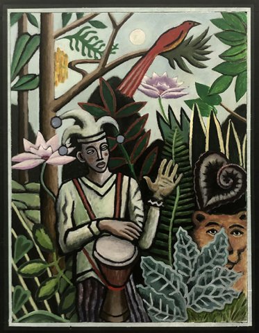 "Jester in the Jungle" 25" X 33" acrylic on canvas